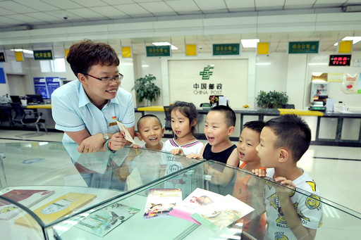 “阿姨,郵票貼在信封上,媽媽就能收到信了嗎?”“阿姨,您幫我蓋個戳吧!我每次在學(xué)校里表現(xiàn)好,老師就給我蓋一個?!?/p>