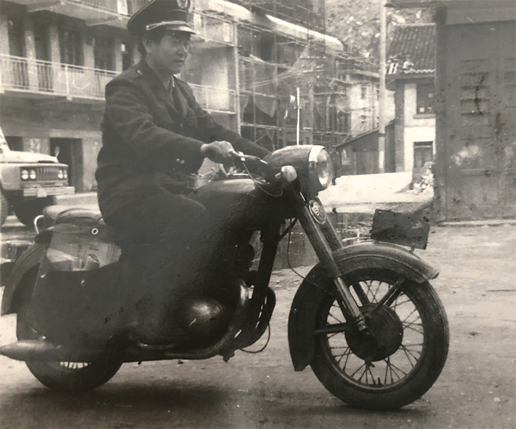 在施建勛的記憶里,墨綠色的制服和摩托車,是父親的標(biāo)配。