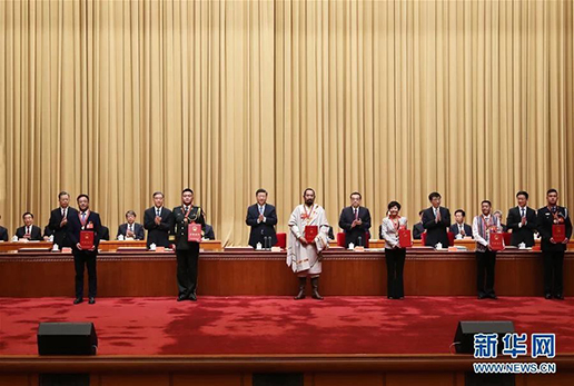 大會表彰了全國民族團結(jié)進步模范集體和模范個人,665個模范集體、812個模范個人受到表彰。在歡快的樂曲聲中,習近平等為受表彰的模范集體和模范個人代表頒獎。