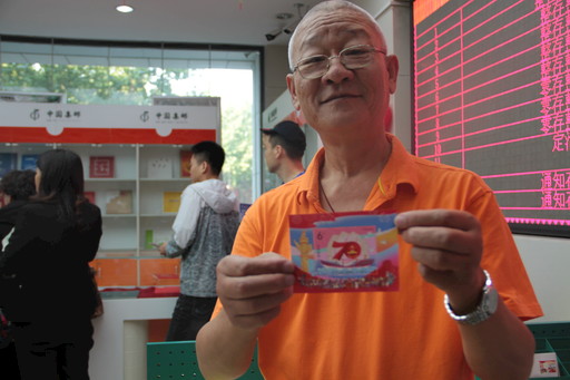 12時(shí)多,會(huì)議室里的集郵愛(ài)好者依舊專注地觀看電視直播?!拔野选液臀业淖鎳?guó)’寄語(yǔ)郵資明信片寄給親朋好友,把中國(guó)人的這份驕傲傳遞出去?!奔]愛(ài)好者王先生購(gòu)買(mǎi)了很多明信片,并在上面寫(xiě)下祝福語(yǔ)。