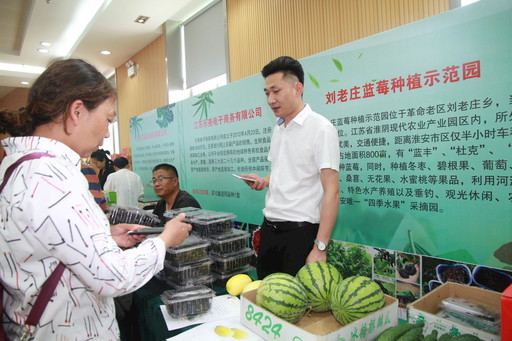 扶貧農產品展臺前,客戶紛紛咨詢購買相關農產品。