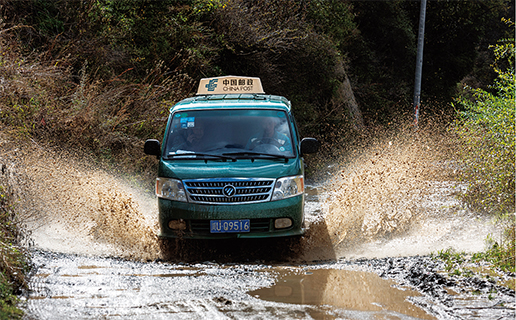 每到雨季,高原牧區(qū)坑坑洼洼的土路就變成了連片的水坑,郵車根本無(wú)法擇路而行,隨時(shí)都有可能陷進(jìn)水坑。