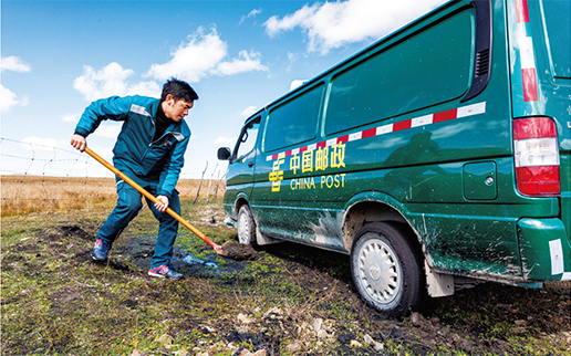 “夏天還好點(diǎn),冬天最讓人惱火?!惫獖Z機(jī)說,若爾蓋一年中大半時(shí)間都在下雪,茫茫大草原上寒風(fēng)刺骨,道路積雪結(jié)冰,車輛經(jīng)常會(huì)滑下路基或陷進(jìn)雪坑。在紛飛的大雪中出班,擋風(fēng)玻璃結(jié)冰,雨刮器被凍住,只能走走停停,不時(shí)除去擋風(fēng)玻璃上的冰雪,10多公里的投遞路往往要走一個(gè)多小時(shí)。
