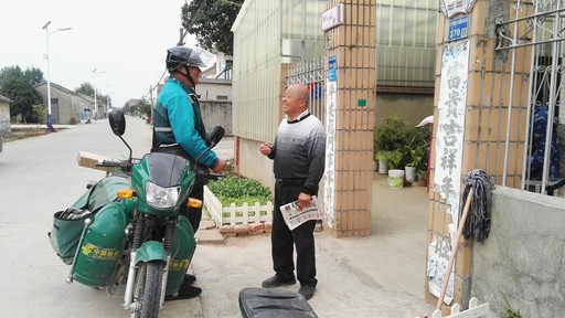 朱根林投送報(bào)刊時(shí)與用戶親切交談。