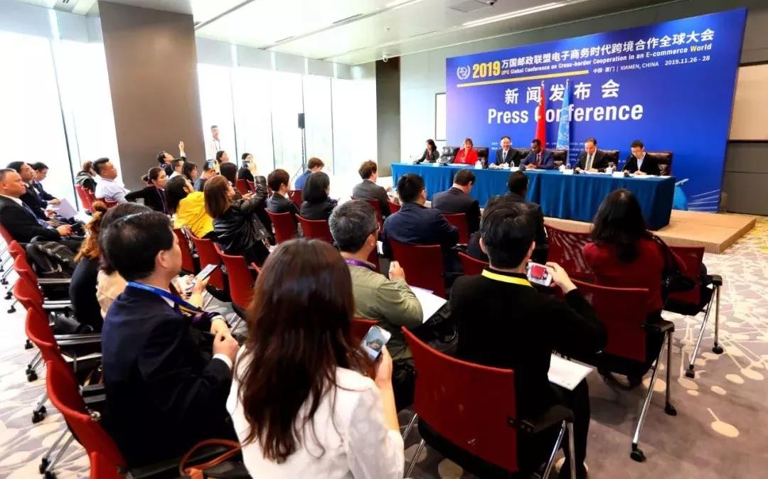 11月26日,萬國郵聯(lián)國際局總局長比沙爾·侯賽因、世界海關(guān)組織守法便利司司長安娜·伊諾霍薩、中國國家郵政局局長馬軍勝、中國郵政集團公司副總經(jīng)理張榮林出席萬國郵聯(lián)電子商務(wù)時代跨境合作全球大會新聞發(fā)布會,圍繞增進全球郵政、海關(guān)、鐵路、航空和跨境管理機構(gòu)之間的合作,發(fā)展完善全球郵政網(wǎng)絡(luò),促進郵政供應(yīng)鏈的安全和便利化,推進國際鐵路運郵,推動跨境電商和全球貿(mào)易可持續(xù)發(fā)展等主題向記者進行了介紹并回答記者提問。