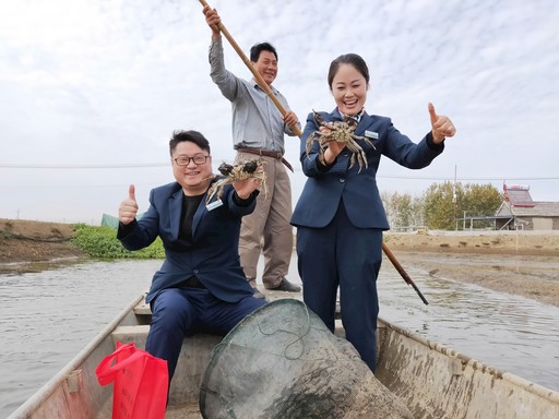 見陳仕珍來了,唐圩村養(yǎng)殖戶王成廣特意劃起船,和她一起分享水肥蟹美的收獲喜悅。