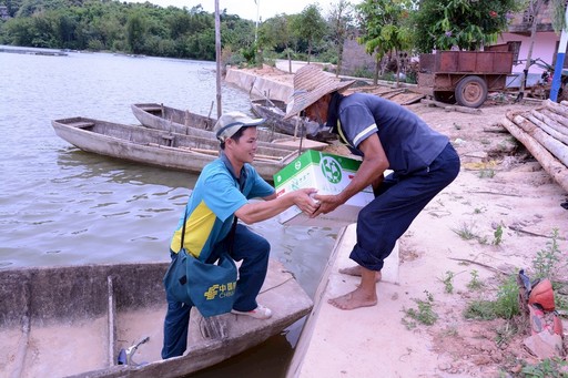 一次恰逢臺(tái)風(fēng)天,有份藥品急件從廣東寄回當(dāng)?shù)刈钇h(yuǎn)的大崇村,收件人是常年體弱多病的王老伯。望著烏云密布的天空,韋仕標(biāo)沒(méi)有多想便騎著摩托車(chē)趕至江邊,撐起船槳搖擺至大崇村,只為了早一點(diǎn)將藥品送給王老伯。