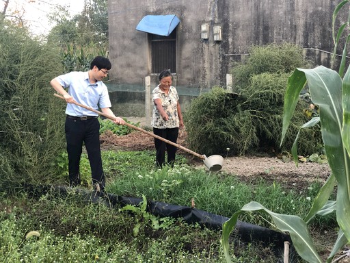 胡博為當(dāng)?shù)剞r(nóng)戶灌溉菜地,將暖心服務(wù)送至田間地頭。