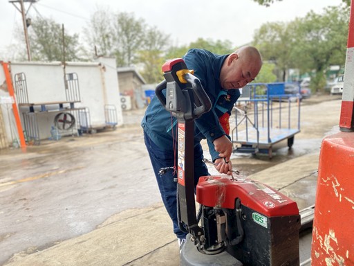 “老陳,你看下,這個(gè)叉車能不能修好?”“我瞅瞅……沒(méi)問(wèn)題,放這兒吧!”