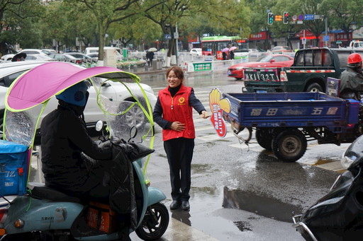 12月19日早高峰時段,浙江省樂清市郵政分公司的黨員志愿者走上街頭,開展“文明垂范 志愿先行”活動。“您好,請遵守交通規(guī)則,非機(jī)動車請退至安全線內(nèi)等候紅燈?!秉h員志愿者身穿紅馬甲,手持“文明出行你最棒”勸導(dǎo)牌,耐心引導(dǎo)過往行人和非機(jī)動車輛遵守交通規(guī)則,勸導(dǎo)不文明交通行為。