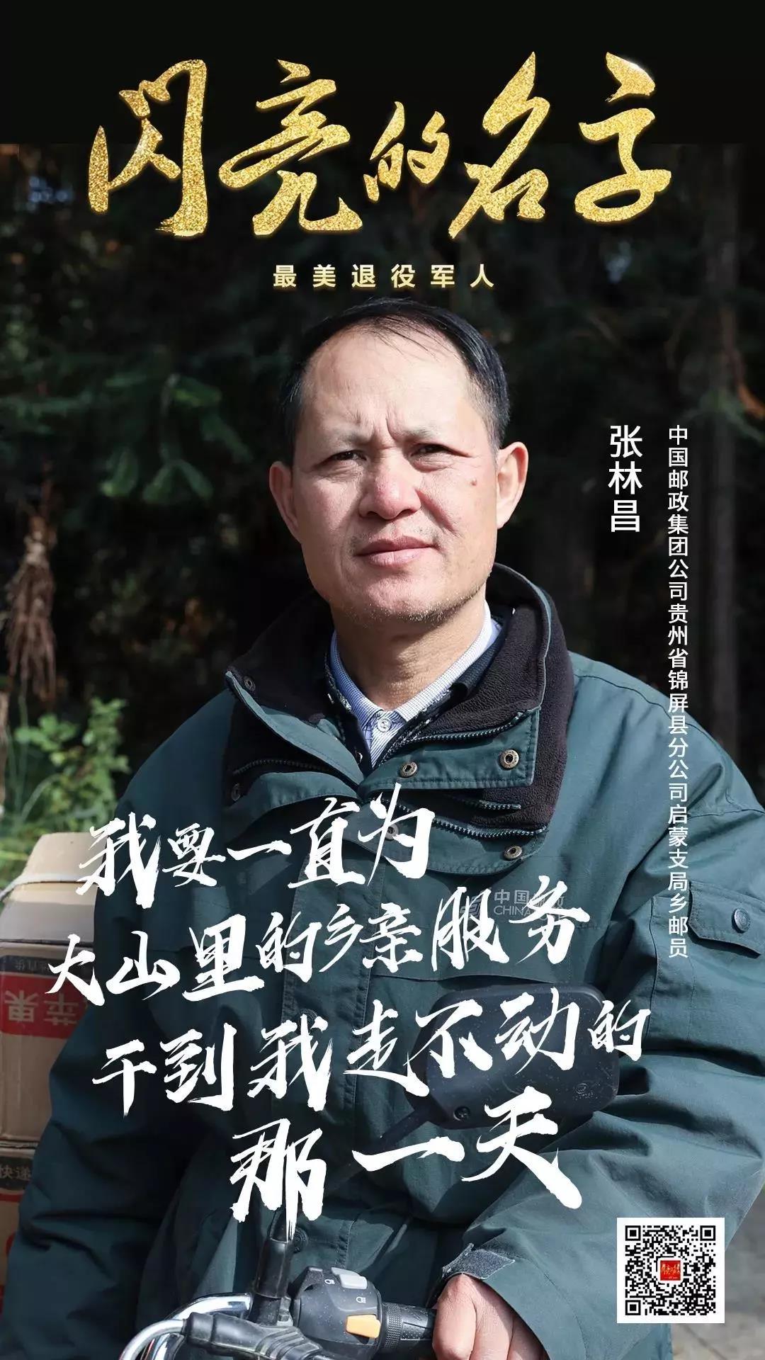張林昌1983年入伍,1987年退役后主動申請到全縣最難走的郵路送信送報,32年來堅持為偏居一隅的苗族侗族同胞投遞報刊、郵件140多萬件,在大山里跋涉超過24萬公里,相當(dāng)于走了19次“二萬五千里長征”;他義務(wù)為山區(qū)群眾代購農(nóng)作物良種、生活用品,代取款,被群眾稱為“鄉(xiāng)郵路上的天使”和“九十九道拐上的綠色使者”。他曾獲全國勞動模范、第四批全國崗位學(xué)雷鋒標(biāo)兵、中國好人、全國模范退役軍人等稱號。