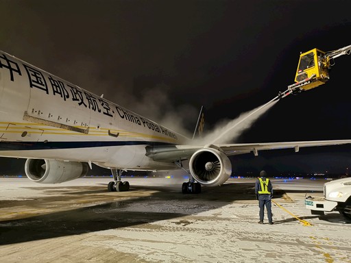 1月5日傍晚至1月6日凌晨,2020年首場大雪按約定時間來京城報到。正逢“小寒”節(jié)氣,北風呼嘯,溫度降至零下5攝氏度。為確保飛行安全,中國郵政航空有限責任公司機務人員頂風冒雪,對凌晨3點執(zhí)行航班的飛機進行除雪作業(yè)?! 醣本┯浾?nbsp; 楊衛(wèi)東 通訊員 潘再峰 攝影報道