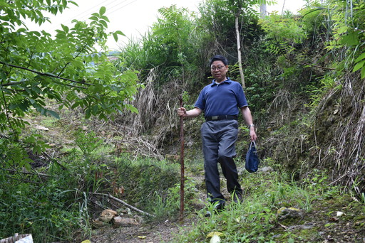 走訪貧困戶遇到山路陡峭時(shí),陳澤維用樹枝作拐杖。