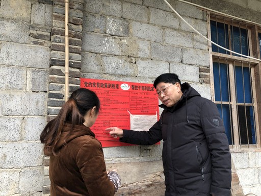 陳澤維向6組貧困戶龐召華的妻子詳細(xì)講解可享受的低保、教育資助、危房改造補(bǔ)貼、無障礙廁所改造、免交合作醫(yī)療費(fèi)用等扶貧保障政策。在布袋溪村,每家貧困戶門前都張貼著“扶貧干部到我家”的公示牌。