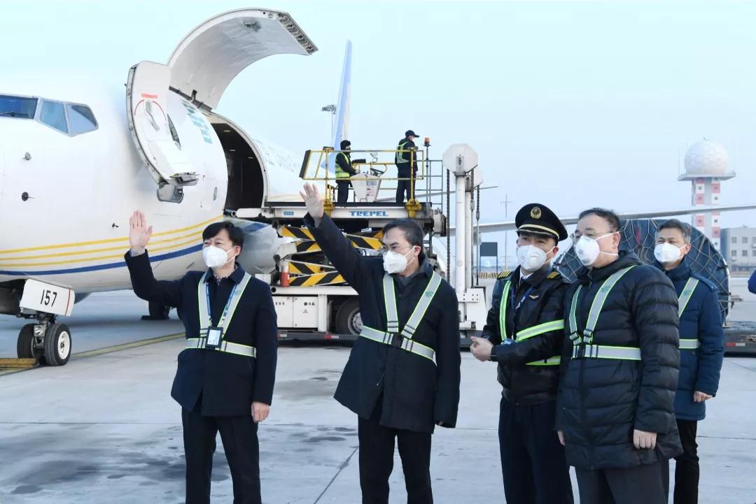 來到郵航停機位,馬軍勝、劉愛力詳細了解了郵航疫情防控和郵航執(zhí)飛防疫物資專機情況,詢問郵航飛機使用年限、裝載量等,察看了物資裝載和飛行準備作業(yè)。登上飛機,馬軍勝、劉愛力關(guān)切地詢問機組人員的身體狀況,叮囑機組人員一定要做好安全防護,在確保個人安全的前提下,完成好專機執(zhí)飛任務,確保將防疫物資及時、安全地運達武漢疫情重災區(qū)??粗鴮C緩緩滑向跑道,馬軍勝、劉愛力向執(zhí)飛機組揮手致意,并一直目送專機起飛。