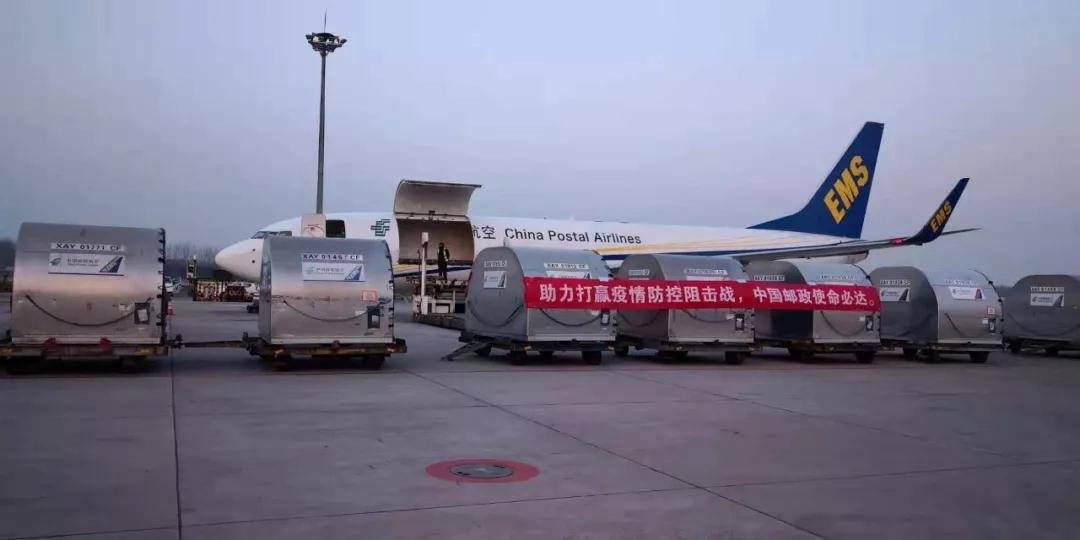 自中國郵政緊急啟動防疫救援物資綠色通道后,截至目前,中國郵政防疫物資寄遞專機(jī)已累計飛行五架次,將共計50多噸的防疫醫(yī)療救援物資在第一時間從廣州、上海、北京運(yùn)抵武漢。