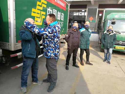 為保證一線員工安全生產(chǎn),山西省忻州市郵政分公司工會(huì)第一時(shí)間為投遞、網(wǎng)運(yùn)一線員工發(fā)放了口罩,并使用消毒液對辦公、生產(chǎn)場所充分消毒,做好一線防護(hù)工作。忻州市各縣級(jí)郵政分公司也積極響應(yīng),為一線員工購買口罩,保證員工防護(hù)到位。圖為忻州市分公司員工在出班前認(rèn)真戴好口罩?! 鯊埦?nbsp; 攝影報(bào)道