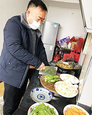 1月27日一大早,阮文學(xué)來(lái)到支局小食堂,和同事們簡(jiǎn)單分工。有的去菜園子摘菜,有的從冰箱里拿出了年前備好的魚(yú)和肉,大家一起洗、切、炒、燉……11:00,熱騰騰的飯菜終于做好了。大家一起用保溫桶打包、備好碗筷,并將打好包的飯菜搬上阮文學(xué)的私家車(chē),阮文學(xué)和王義勝一起開(kāi)著車(chē)趕往高速路口的值守點(diǎn)。