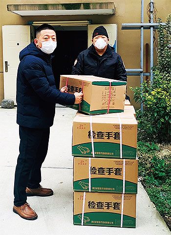 湖北省武漢市東西湖區(qū)郵政分公司市場(chǎng)營(yíng)銷(xiāo)部經(jīng)理張虎張虎(左)搬運(yùn)醫(yī)療物資。