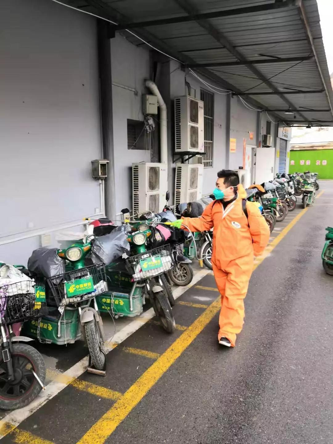 徐龍所工作的上海路投遞站位于武漢市中心,投遞范圍內(nèi)有武漢市中心醫(yī)院與商職醫(yī)院兩個(gè)收治感染患者的定點(diǎn)醫(yī)院,還有上百家藥房。隨著疫情形勢(shì)越來越嚴(yán)峻,來自五湖四海的防疫物資源源不斷來到投遞站,等待投遞。作為醫(yī)護(hù)人員家屬,徐龍比其他同事更加懂得防護(hù)的重要性。每天七點(diǎn)鐘不到,徐龍就會(huì)趕到投遞站,主動(dòng)趕在同事們上班之前做好站點(diǎn)和郵件的消毒工作?!胺浅r(shí)期,每個(gè)人都想做點(diǎn)什么,這也是我們的家?!?/p>