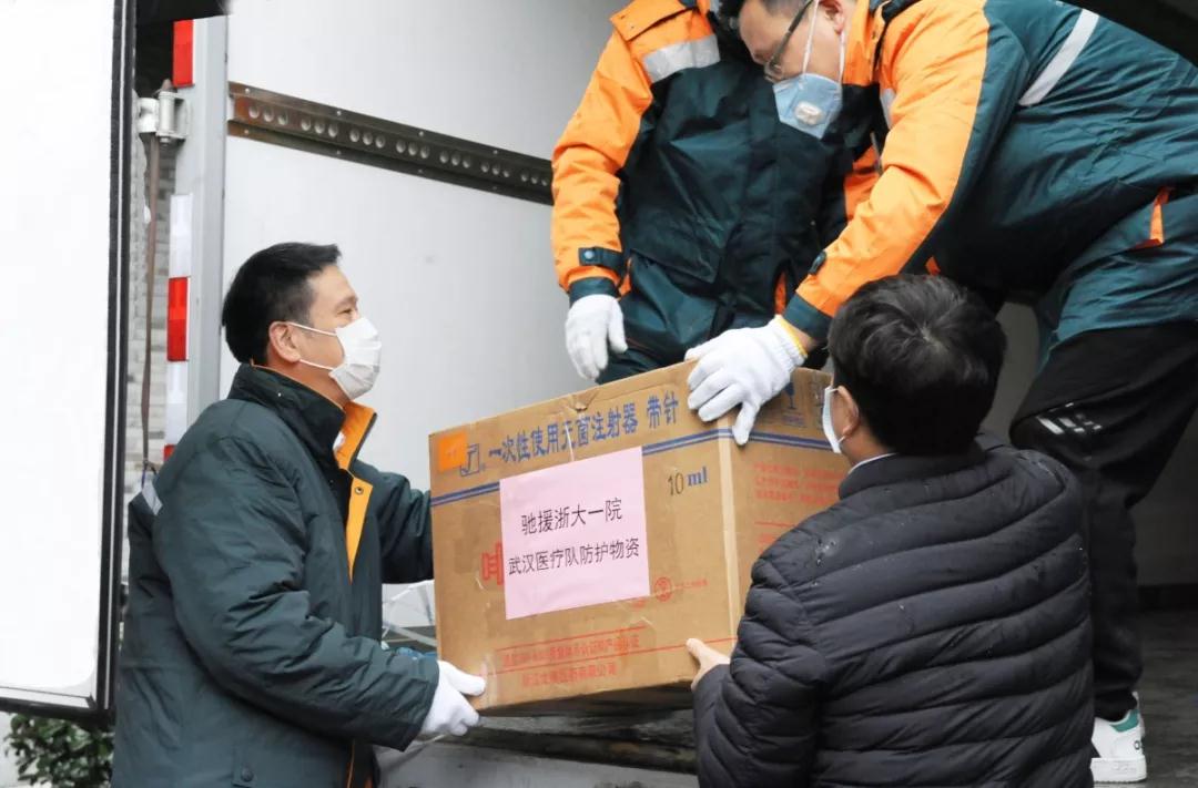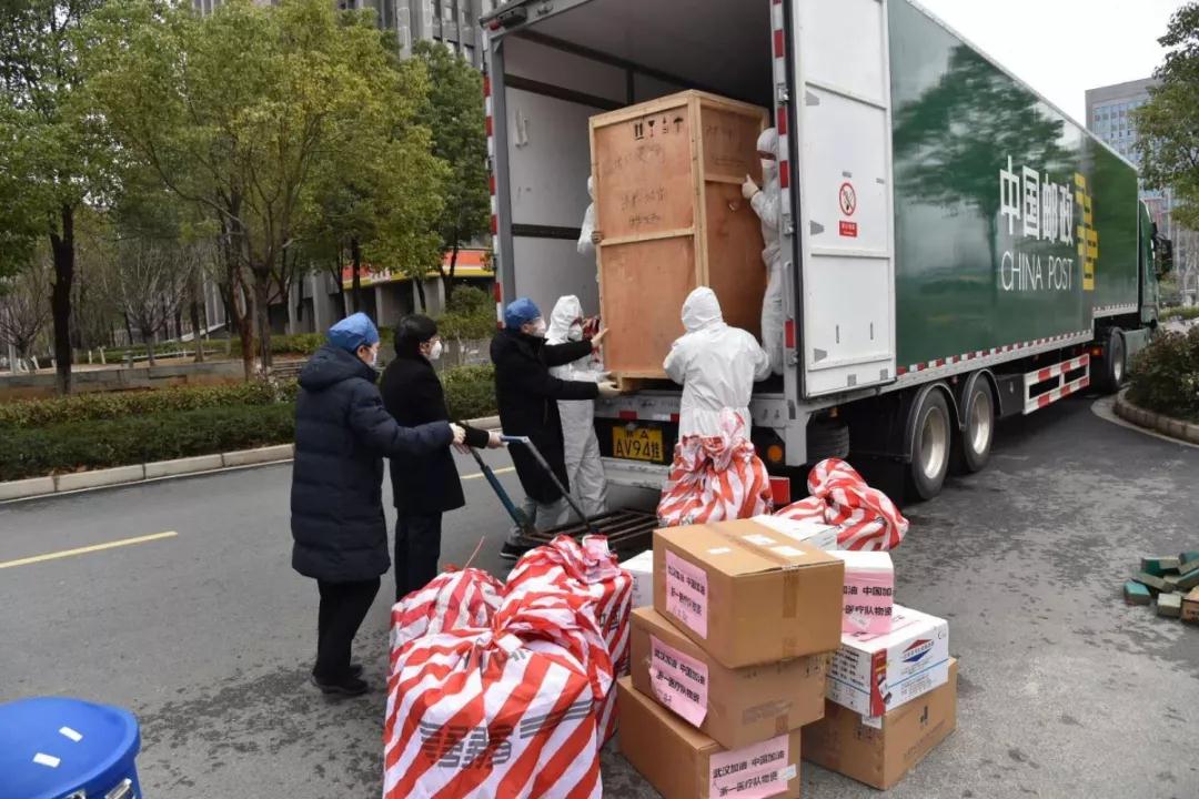2月6日下午,一輛郵車開(kāi)進(jìn)了浙江大學(xué)醫(yī)學(xué)院附屬第一醫(yī)院,停在了17號(hào)樓前,郵政和醫(yī)院雙方的工作人員冒著淅瀝的小雨小心翼翼地將裝著醫(yī)療耗材的一個(gè)個(gè)大箱子搬進(jìn)車廂。浙江省郵政分公司黨委書(shū)記、總經(jīng)理陳清,浙大一院常務(wù)副院長(zhǎng)裘云慶、黨委副書(shū)記邵浙新均到達(dá)了現(xiàn)場(chǎng)。