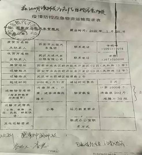 下午1:00,西安市分公司運(yùn)送此批物資的車輛剛剛停穩(wěn)在郵件處理中心接發(fā)平臺(tái)前,西安郵區(qū)中心局緊急抽調(diào)的裝車人員便開始了緊張的卸車裝車作業(yè)。下午2:00,抗疫物資裝車完畢,運(yùn)輸中心駕駛員桑為民和李寧再次踏上馳援武漢的征程,并于2月1日早8:10順利到達(dá)卸貨點(diǎn),將疫情防控應(yīng)急物資安全送達(dá)接收方——武漢大通汽車出租有限公司?!案兄x中國(guó)郵政!”收到急需物資的客戶忍不住在簽收單上寫下自己的心聲??吹浇邮辗叫盾嚾耸植蛔?,駕駛員桑為民、李寧顧不得一路疲憊,又主動(dòng)幫助卸車,盡快將應(yīng)急物資交付客戶手中。這次特殊的郵運(yùn)工作也得到了社會(huì)媒體的關(guān)注,1月31日晚,陜西電視臺(tái)《都市快報(bào)》欄目對(duì)此事進(jìn)行了報(bào)道。