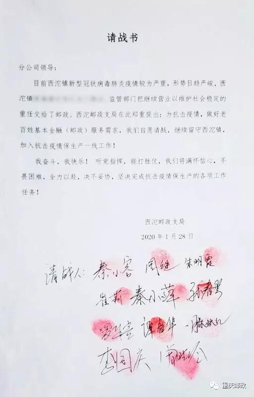 請(qǐng)戰(zhàn)書(shū)上,有郵政人11枚鮮紅的指印
