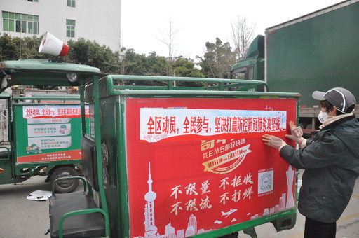 2月6日,四川省資陽(yáng)市郵政寄遞事業(yè)部雁江區(qū)營(yíng)業(yè)部大力配合區(qū)政府防疫宣傳,為投遞三輪車安裝疫情防控宣傳小喇叭30個(gè)、宣傳標(biāo)語(yǔ)60幅,并通過(guò)投遞人員發(fā)放疫情防控宣傳DM1萬(wàn)份?! 趿_軍 攝影報(bào)道