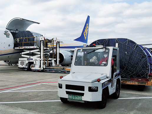 1月27日,郵航首班包機(jī)承運(yùn)的防疫物資在廣州進(jìn)行裝機(jī)作業(yè)。
