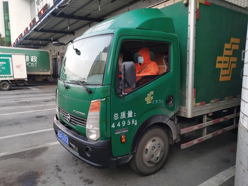 1月24~31日,從位于武漢國(guó)際博覽中心的防疫物資集散地發(fā)車,湖北郵政已將11個(gè)類別、87個(gè)批次的11325箱防疫物資送到了戰(zhàn)役情一線。為做好配送工作,50輛郵車隨時(shí)待命,24小時(shí)輪崗值班,防疫物資隨到、隨卸、隨分、隨走,被及時(shí)轉(zhuǎn)運(yùn)到全市38個(gè)醫(yī)院、15個(gè)區(qū)、53個(gè)配送點(diǎn)。圖為武漢郵區(qū)中心局郵車接到指令后,前往集散地執(zhí)行運(yùn)輸任務(wù)。 □湖北省郵政分公司新聞中心 提供
