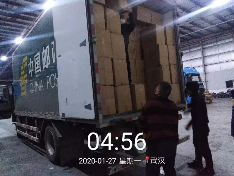 23時30分,2萬件防護服共計400箱物資在彭場工業(yè)園開始裝車。在2個多小時的裝車工作后,27日凌晨2時,滿滿一車的防疫物資由駕押員廖棟駕駛郵車送往武漢。