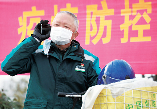 “我的兵齡加上工齡有42年了,從未遇到過如此嚴(yán)重的疫情,作為一名老黨員更知孰輕孰重,更應(yīng)在這場(chǎng)沒有硝煙的戰(zhàn)斗中守好陣地?!背錾?960年4月已臨近退休的江蘇省金湖縣郵政分公司城區(qū)投遞員馬玉龍,于1月26日得知家鄉(xiāng)打響了新型冠狀病毒肺炎疫情阻擊戰(zhàn),毅然放棄了首次春節(jié)休長(zhǎng)假與家人盡興團(tuán)圓的計(jì)劃,辭別了在蘇州市安家的妻兒,回到服務(wù)崗位并對(duì)單位領(lǐng)導(dǎo)給出堅(jiān)持工作的理由。