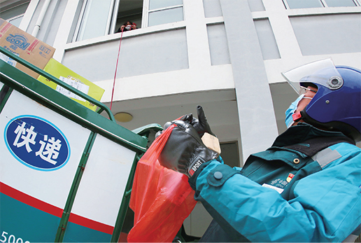 電話預(yù)告郵件遞送,讓樓房住戶用繩帶接收,避免了人與人的接觸。