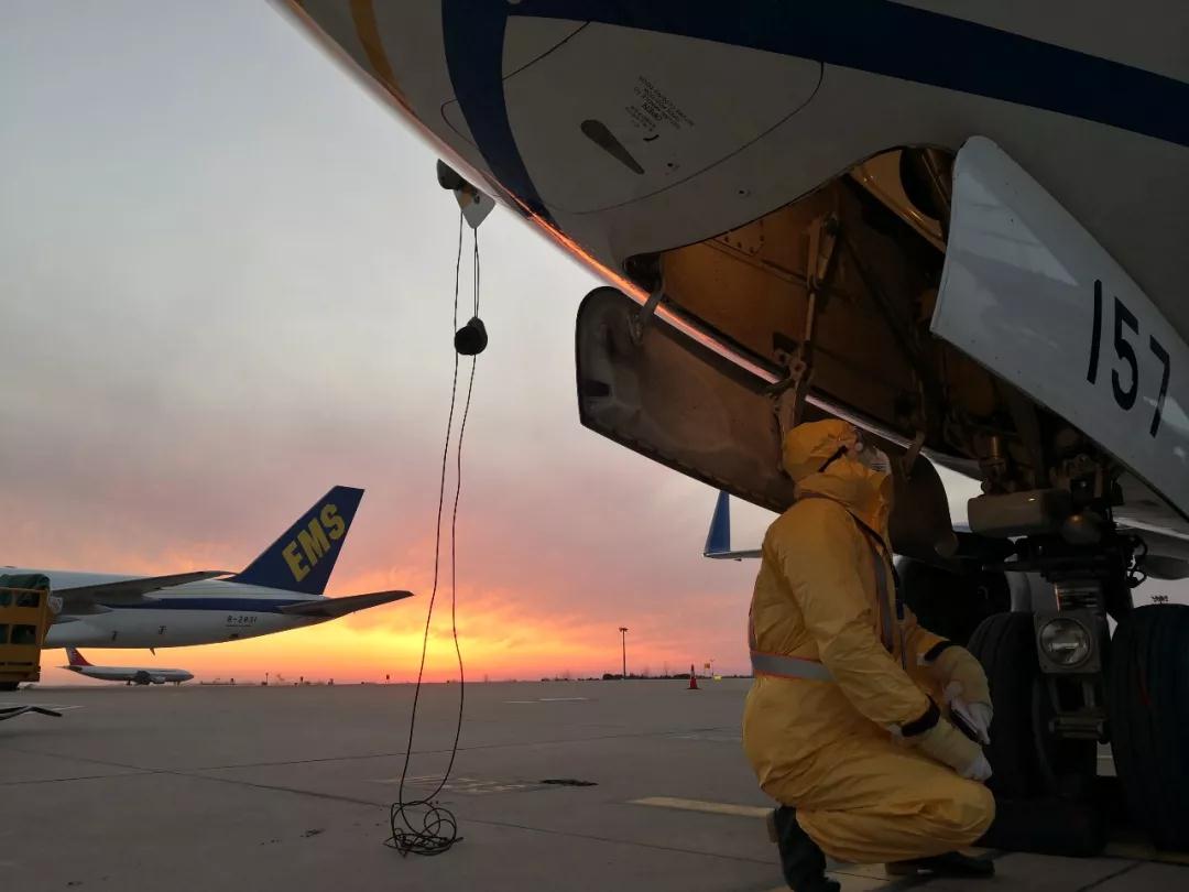 郵航武漢駐站機務(wù)對飛機進行過站檢查