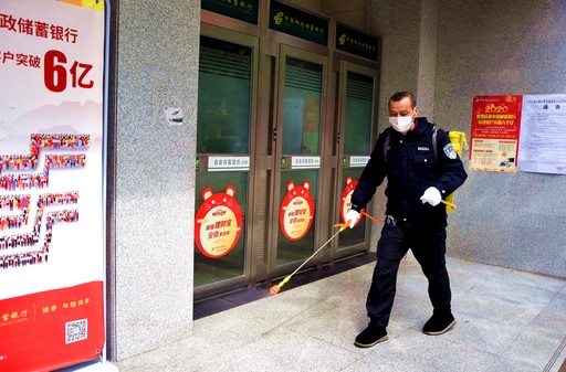 連日以來,湖南省新寧縣郵政分公司積極配合政府部門,對新冠肺炎疫情防控工作抓實、抓嚴(yán),每天對辦公場所消毒三次,確保人民生命安全得到保障。圖為該分公司保安人員正在對取款機室進(jìn)行消毒。 石國興 攝影報道