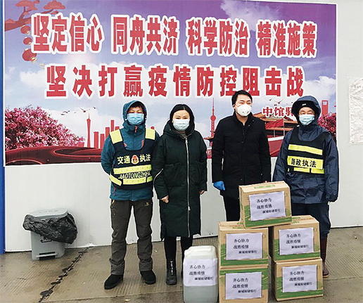 2月17日,麻城市支行黨總支書記、行長王繼東帶隊為當(dāng)?shù)啬虾k事處牌樓社區(qū)疫情防控工作隊送去10袋大米、5壺油和500個口罩等抗疫物資,為掛點扶貧村疫情防控工作送去抗“疫”動力。