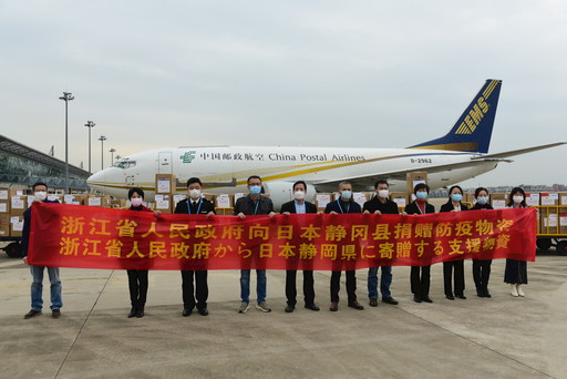 3月12日11時,浙江省政府向日本和韓國捐贈防疫物資的交接啟運儀式在義烏機場舉行。浙江省政府外事辦公室、省經信廳將物資交付浙江省郵政分公司承運。此次捐贈物資包含了口罩、防護服、護目鏡等共計近千箱防疫物資,其中捐贈日本的物資將由中國郵政“義烏—大阪”郵航貨運包機直航送達。自2月6日浙江省分公司開通“義烏—大阪”往返郵航貨運包機海外捐贈“綠色通道”以來,已完成多批次防疫物資的運輸工作,使義烏成為防疫物資捐贈和運輸?shù)囊粋€重要口岸?!鯀栭?nbsp; 攝影報道