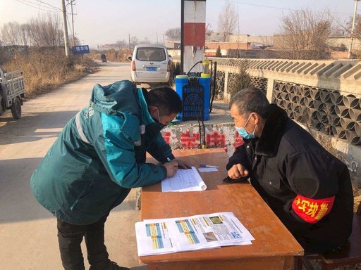 郭樹(shù)理在村口配合防疫人員做好登記。