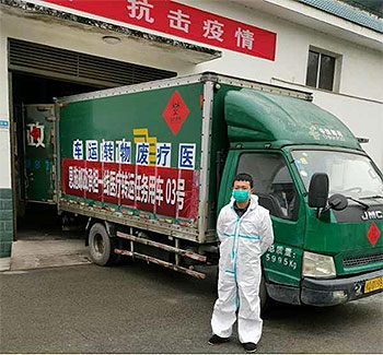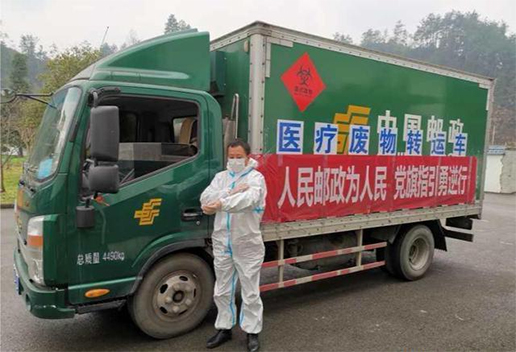 得知消息后,州郵政公司員工、退役軍人尹江、向耀俊、江道權(quán)做通家屬工作,主動(dòng)要求參與轉(zhuǎn)運(yùn)工作,火線組建突擊隊(duì),駕郵車出征高危戰(zhàn)場,為定點(diǎn)收治醫(yī)院轉(zhuǎn)運(yùn)醫(yī)療廢棄物。