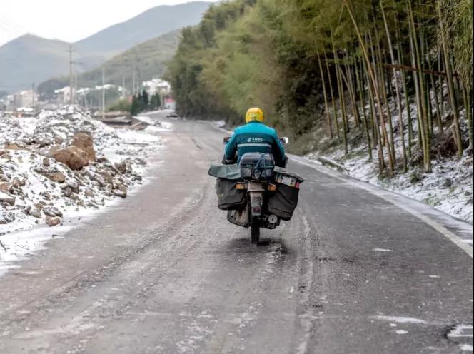 不管什么天氣,送件不能耽誤,全國各地皆是如此。因?yàn)樗麄冎溃咔槠陂g,能把這些郵件包裹盡快送到人們手里,就是最好的定心丸。