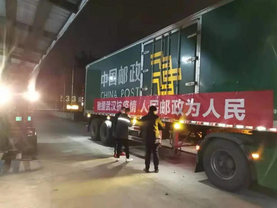 來自全國各地的各類物資,不分晝夜地被郵政運(yùn)輸車送進(jìn)疫區(qū)。