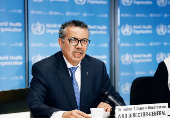 2020年2月17日,世界衛(wèi)生組織總干事譚德塞在世衛(wèi)組織有關(guān)新冠肺炎的例行記者會上說,中國疾病預(yù)防控制中心最新發(fā)布的有關(guān)新冠肺炎的流行病學(xué)報(bào)告,為世衛(wèi)組織向各國提出防控疫情的合理建議提供了幫助。 新華社記者 陳俊俠/攝