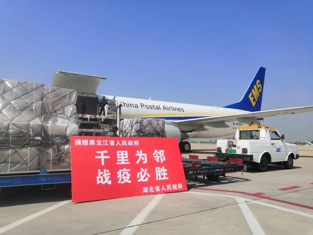 4月15日下午,湖北省捐贈黑龍江省的近3000萬元醫(yī)用防護物資和醫(yī)療救治設(shè)備,通過CF9111(波音737-800)、CF9116(波音757-200)、CF9128(波音737-300)三架郵航包機從武漢天河機場相繼運抵哈爾濱、牡丹江機場。作為首家執(zhí)行向綏芬河運輸緊急醫(yī)療物資的航空公司,這也是中國郵政航空公司自1月26日執(zhí)行防疫物資運輸包機重大任務(wù)以來,首次在一天內(nèi)同時啟用三架飛機、三種機型進行運輸作業(yè)。隨后,這批物資將由黑龍江省郵政分公司點對點以最快速度送達綏芬河。