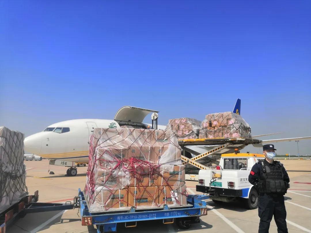 湖北省捐贈物資裝上郵航包機。