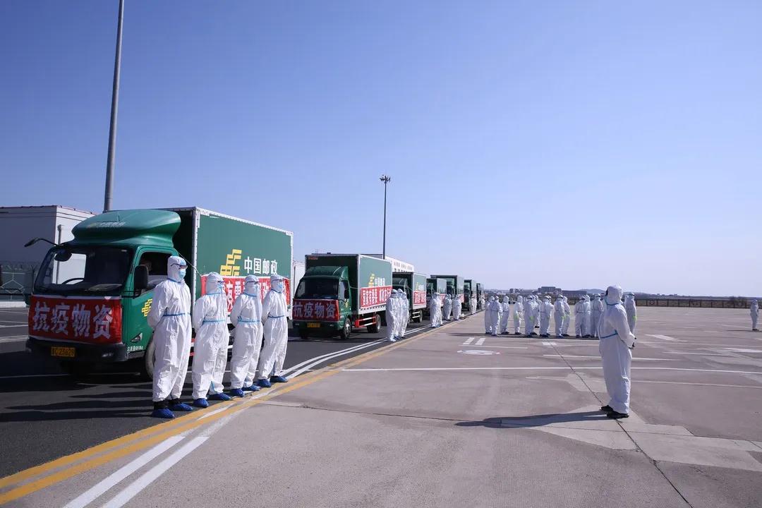 為及時將抗疫物資運送到綏芬河,黑龍江省郵政分公司召開緊急會議,相關(guān)負責(zé)人趕赴哈爾濱、牡丹江兩大機場一線指揮,并迅速組織哈爾濱郵區(qū)中心局和牡丹江市郵政分公司展開航班物資接卸及陸路運輸工作。哈爾濱郵區(qū)中心局接到通知后第一時間著手調(diào)配4臺22噸的郵政貨車,牡丹江郵區(qū)中心局緊急調(diào)配12噸、8噸、4噸等共10臺郵政貨車承擔(dān)運輸任務(wù)。