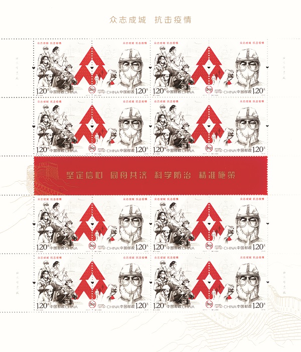 在印制工藝上,郵票還首次采用了“心形”異形齒孔,強(qiáng)化萬(wàn)眾一心、抗擊疫情的寓意,也表達(dá)了前方后方心連心、共同抗疫的堅(jiān)定信念。該套郵票由王虎鳴、劉向平設(shè)計(jì),北京郵票廠影寫(xiě)版工藝印制。