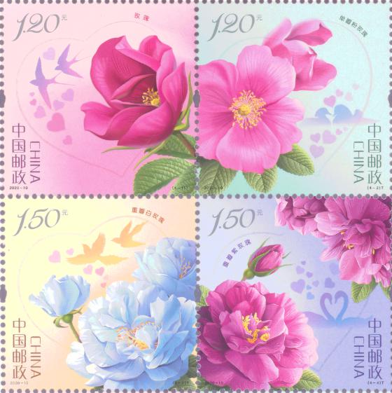 中國(guó)郵政定于2020年5月20日發(fā)行《玫瑰》特種郵票1套4枚。