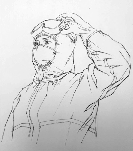 《眾志成城 抗擊疫情》郵票中醫(yī)護(hù)工作者草圖。