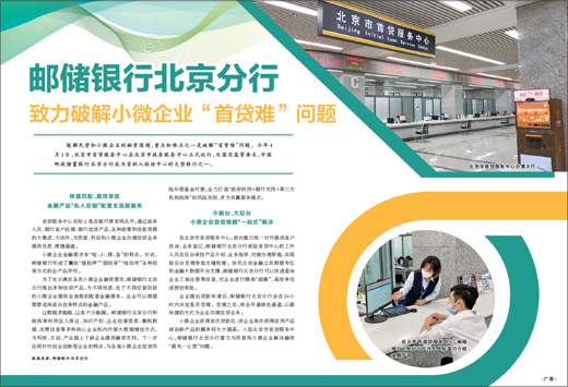 緩解民營(yíng)和小微企業(yè)的融資困境,重點(diǎn)和難點(diǎn)之一是破解“首貸難”問(wèn)題。今年4月1日,北京市首貸服務(wù)中心在北京市政務(wù)服務(wù)中心正式運(yùn)行,為落實(shí)監(jiān)管要求,中國(guó)郵政儲(chǔ)蓄銀行北京分行成為首批入駐該中心的大型銀行之一。