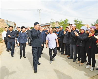 6月8日至10日,中共中央總書記、國家主席、中央軍委主席習(xí)近平在寧夏考察。這是6月8日下午,習(xí)近平在吳忠市紅寺堡區(qū)紅寺堡鎮(zhèn)弘德村看望移民搬遷群眾,向村民們揮手致意。 新華社記者 謝環(huán)馳攝
